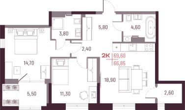 • Продуманные планировки с мастер-спальнями, гардеробными и даже ванными комнатами с окном.