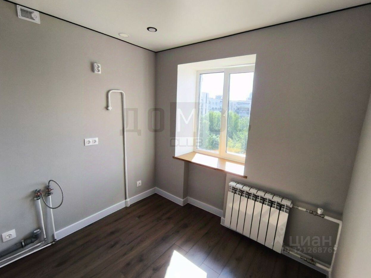 Квартира очень светлая - окна во двор с озеленением (не на дорогу) на Юго-Запад, с шикарным видом на город. Улучшенная планировка правильной формы; комнаты изолированы; в прихожей имеется место под шкаф-купе (где проведены трубы для стиральной машины); туалет и ванная раздельные; балкон застеклен и утеплен.