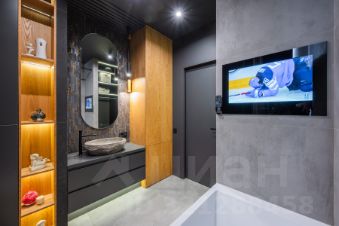 В санузле теплый пол ,в ванной установлен водонепроницаемый телевизор .
