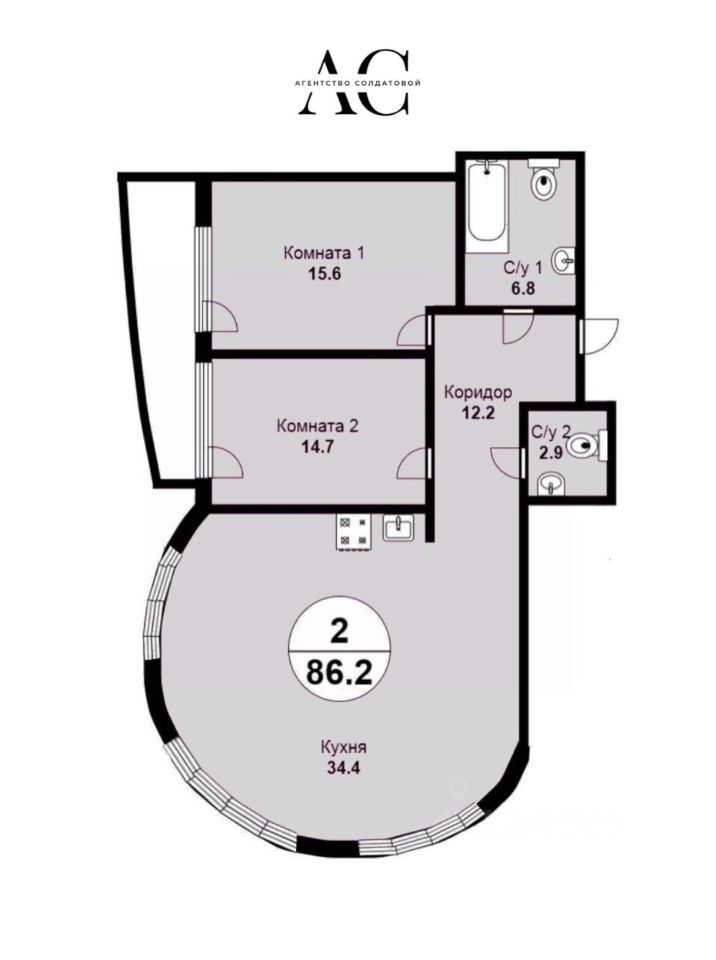 В квартире все помещения раздельные: большая кухня-гостиная, две спальни, хоз комната, санузел.большая лоджия. Все пространство квартиры можно использовать функционально.