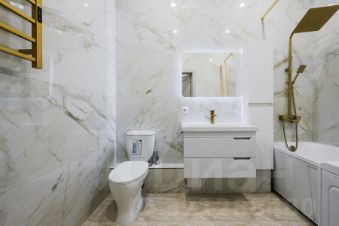 Санузел совмещенный, что является практичным решением для экономии пространства.