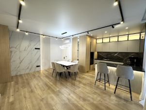 В квартире сделан дизайнерский ремонт, который создает комфортную и стильную обстановку. Просторная кухня позволяет собираться всей семьей за обеденным столом. В квартире есть один совмещенный санузел в спальне,один отдельный санузел, что весьма удобно для большой семьи. Балкон предоставляет возможность наслаждаться свежим воздухом, не выходя из дома.