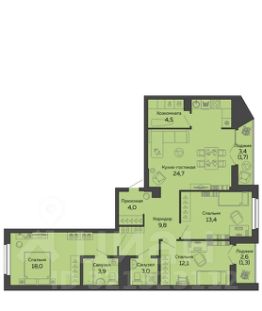 Продается просторная трехкомнатная квартира в новом доме на улице 8 Марта, 204Г в Екатеринбурге. Общая площадь составляет 93.4 кв. м, с жилой площадью 43.47 кв. м и кухней 24.74 кв. м. Квартира находится на 12-м этаже 25-этажного дома, построенного в 2023 году. Высота потолков — 2.7 метра. Из окон открывается вид как на улицу, так и во двор.