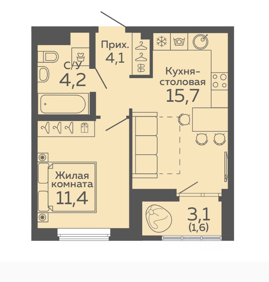 Уютная однокомнатная квартира находится на втором этаже. Окна выходят на сторону закрытого внутреннего двора, что обеспечивает спокойствие и тишину.