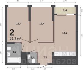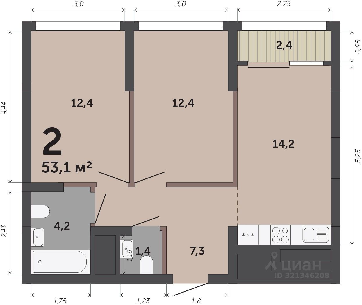 Продаётся двухкомнатная квартира площадью 52,3 кв.м расположенная на 24 этаже в центральной башне жилого комплекса.
