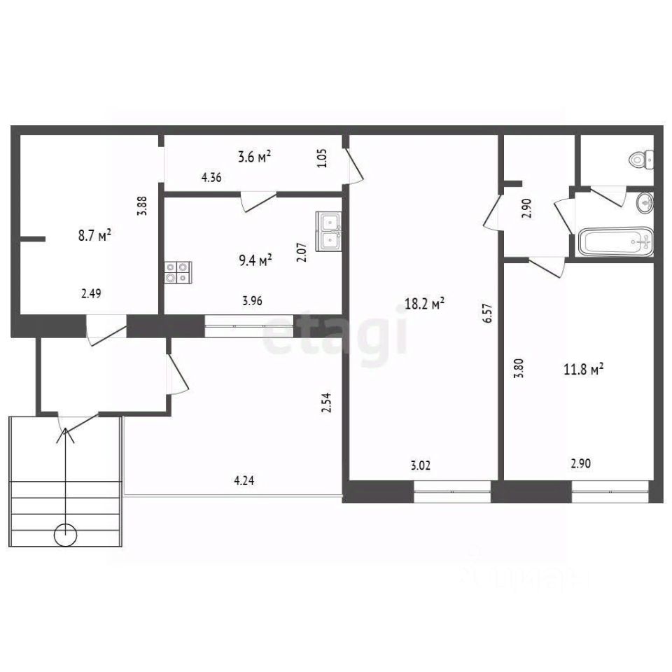 Квартира площадью 55.5 кв.м. 2 изолированных комнаты, просторная прихожая и уютная кухня 7.4 кв.м. создают атмосферу уюта и комфорта. Имеется просторная лоджия.