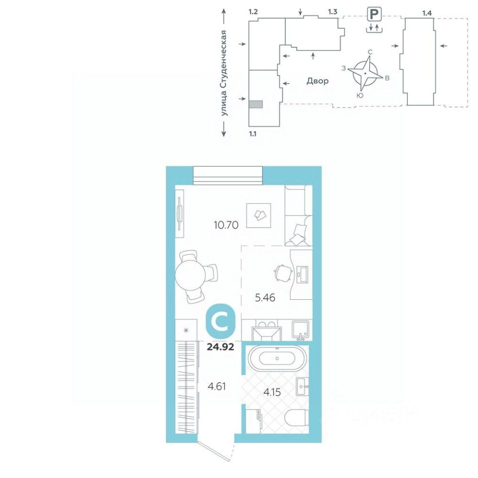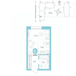 Квартира разработана с акцентом на удобство и практичность. Спальня создает атмосферу для спокойного отдыха, а ванная комната оснащена всеми необходимыми удобствами. Благодаря большим окнам все помещения хорошо освещены и идеально подходят для расстановки мебели. Планировка кухни позволяет эффективно зонировать пространство.