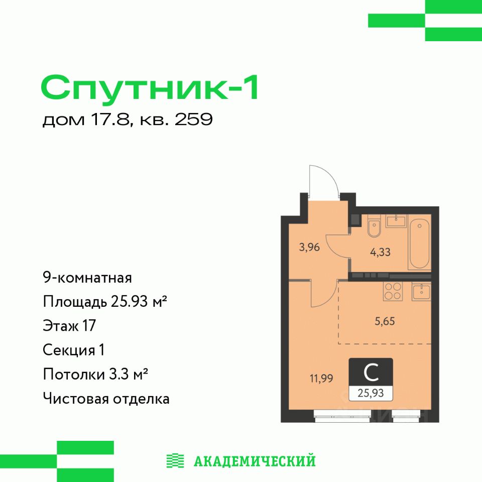 Общая площадь25,93 м²