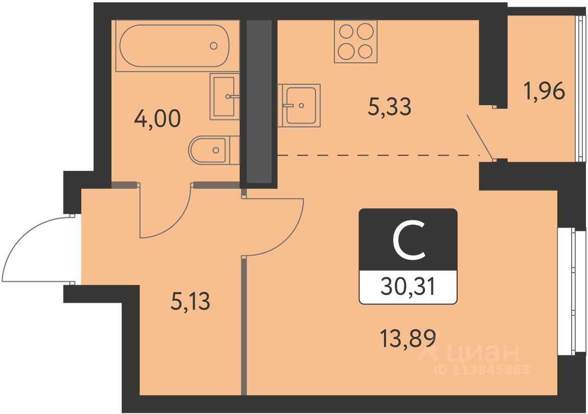Общая площадь29,33 м²