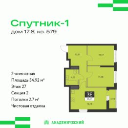Общая площадь54,92 м²