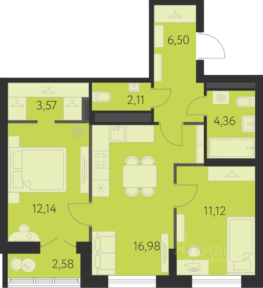 Общая площадь58,07 м²