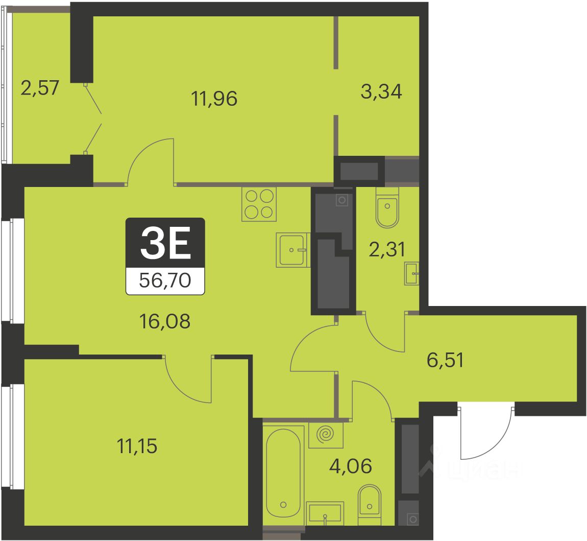 Общая площадь56,5 м²