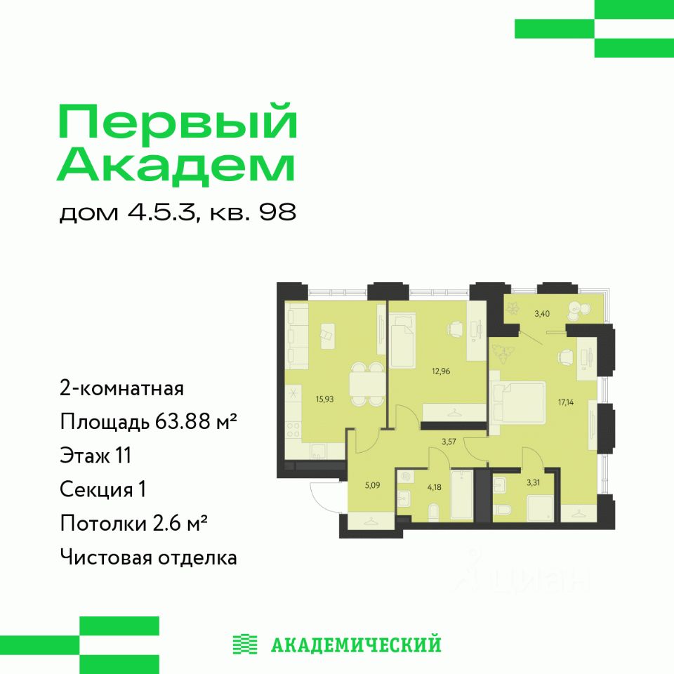 Проект от основателя и главного застройщика Академического района. Расположение и инфраструктура: Квартал "Первый Академ" включает восемь блоков домов, две школы и четыре детских сада в периметре улиц Краснолесья А. Мехренцева Ак. Вонсовского Очеретина. Сроки строительства квартала: 1 квартал 2023 3 квартал 2028. В числе особых преимуществ близость к Юго-западному лесопарку и ТРЦ "Академический": магазины, кафе, парк развлечений, кинотеатр, фитнесс-центр с бассейном. Развитая транспортная развязка, включающая трамвайную линию. На территории квартала планируется: видеонаблюдение 24/7, подземный паркинг с доступом на лифте, кладовые, велодорожки, многоуровневое озеленение, workout зоны для уличного фитнеса, детские игровые комплексы в эко-стиле. На первых этажах будут располагаться торговые галереи.