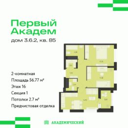 Проект от основателя и главного застройщика Академического района. Расположение и инфраструктура: Квартал "Первый Академ" включает восемь блоков домов, две школы и четыре детских сада в периметре улиц Краснолесья А. Мехренцева Ак. Вонсовского Очеретина. Сроки строительства квартала: 1 квартал 2023 3 квартал 2028. В числе особых преимуществ близость к Юго-западному лесопарку и ТРЦ "Академический": магазины, кафе, парк развлечений, кинотеатр, фитнесс-центр с бассейном. Развитая транспортная развязка, включающая трамвайную линию. На территории квартала планируется: видеонаблюдение 24/7, подземный паркинг с доступом на лифте, кладовые, велодорожки, многоуровневое озеленение, workout зоны для уличного фитнеса, детские игровые комплексы в эко-стиле. На первых этажах будут располагаться торговые галереи.