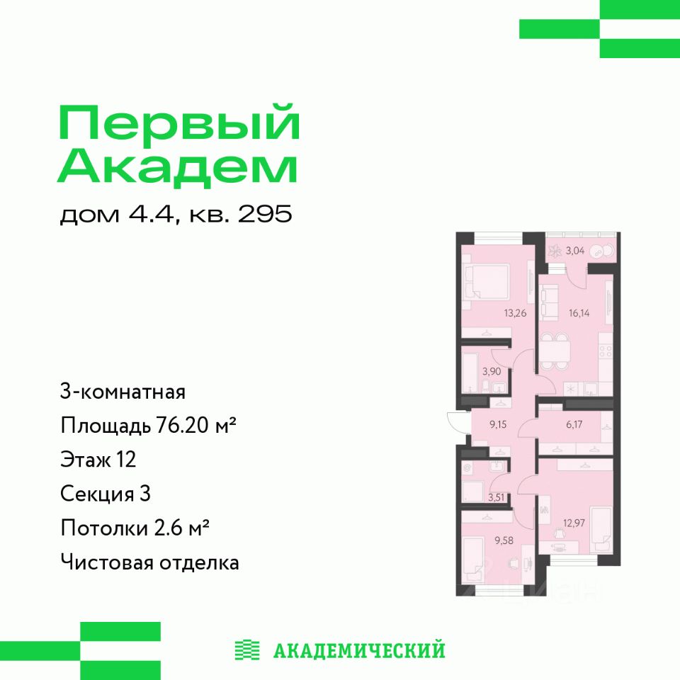 Проект от основателя и главного застройщика Академического района. Расположение и инфраструктура: Квартал "Первый Академ" включает восемь блоков домов, две школы и четыре детских сада в периметре улиц Краснолесья А. Мехренцева Ак. Вонсовского Очеретина. Сроки строительства квартала: 1 квартал 2023 3 квартал 2028. В числе особых преимуществ близость к Юго-западному лесопарку и ТРЦ "Академический": магазины, кафе, парк развлечений, кинотеатр, фитнесс-центр с бассейном. Развитая транспортная развязка, включающая трамвайную линию. На территории квартала планируется: видеонаблюдение 24/7, подземный паркинг с доступом на лифте, кладовые, велодорожки, многоуровневое озеленение, workout зоны для уличного фитнеса, детские игровые комплексы в эко-стиле. На первых этажах будут располагаться торговые галереи.