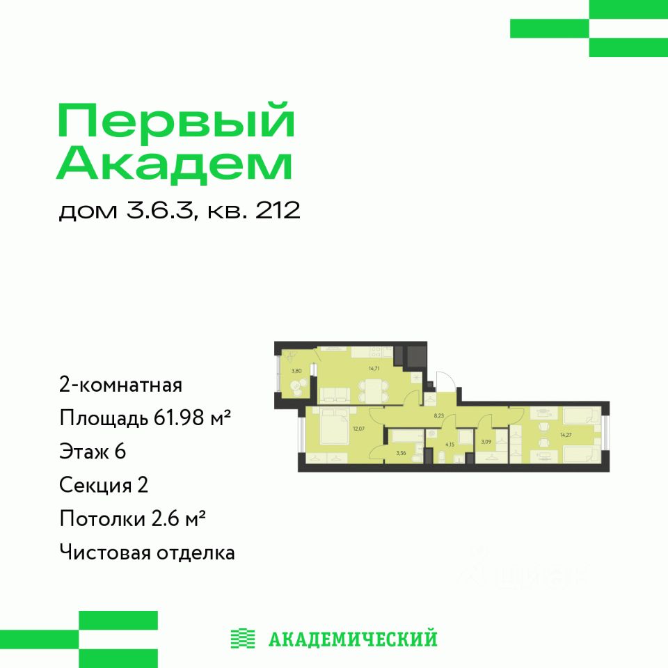 Проект от основателя и главного застройщика Академического района. Расположение и инфраструктура: Квартал "Первый Академ" включает восемь блоков домов, две школы и четыре детских сада в периметре улиц Краснолесья А. Мехренцева Ак. Вонсовского Очеретина. Сроки строительства квартала: 1 квартал 2023 3 квартал 2028. В числе особых преимуществ близость к Юго-западному лесопарку и ТРЦ "Академический": магазины, кафе, парк развлечений, кинотеатр, фитнесс-центр с бассейном. Развитая транспортная развязка, включающая трамвайную линию. На территории квартала планируется: видеонаблюдение 24/7, подземный паркинг с доступом на лифте, кладовые, велодорожки, многоуровневое озеленение, workout зоны для уличного фитнеса, детские игровые комплексы в эко-стиле. На первых этажах будут располагаться торговые галереи.