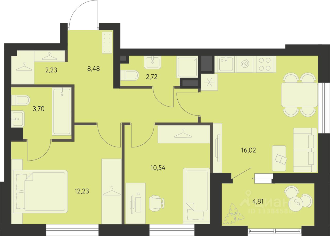 Общая площадь58,33 м²