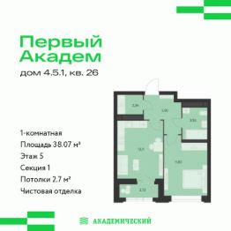 Общая площадь38,07 м²