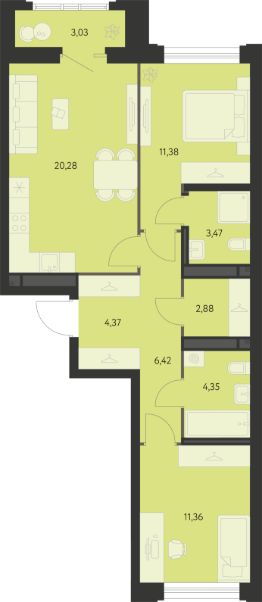 Общая площадь66,03 м²
