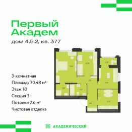 Проект от основателя и главного застройщика Академического района. Расположение и инфраструктура: Квартал "Первый Академ" включает восемь блоков домов, две школы и четыре детских сада в периметре улиц Краснолесья А. Мехренцева Ак. Вонсовского Очеретина. Сроки строительства квартала: 1 квартал 2023 3 квартал 2028. В числе особых преимуществ близость к Юго-западному лесопарку и ТРЦ "Академический": магазины, кафе, парк развлечений, кинотеатр, фитнесс-центр с бассейном. Развитая транспортная развязка, включающая трамвайную линию. На территории квартала планируется: видеонаблюдение 24/7, подземный паркинг с доступом на лифте, кладовые, велодорожки, многоуровневое озеленение, workout зоны для уличного фитнеса, детские игровые комплексы в эко-стиле. На первых этажах будут располагаться торговые галереи.