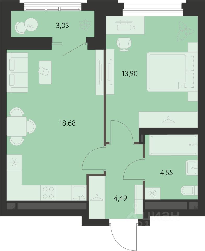 Общая площадь43,14 м²