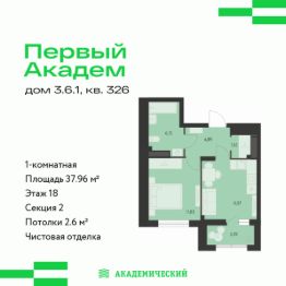 Продается 1-комнатная квартира площадью 37.96 кв.м. от девелопера "Академический" в жилом квартале "Первый Академ". Срок сдачи дома в 2026 году. Выгоды и скидка напрямую от застройщика. Дом расположен на въезде в район, отличается удобной транспортной развязкой. Рядом новая трамвайная линия и остановка общественного транспорта. Три дома разной этажности. Эко-тренды во дворах. Холлы и фасады в стиле ар-деко. В продаже имеются квартиры с видом на парк. На территории квартала предусмотрено множество удобств для жильцов, включая видеонаблюдение 24/7, двор без машин, кладовые и подземный паркинг с выходом из лифта, коммерция на первых этажах. В числе особых преимуществ близость к Юго-западному лесопарку и ТРЦ "Академический": магазины, кафе, парк развлечений, кинотеатр, фитнесс-центр с бассейном.