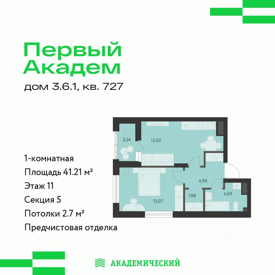 Продается 1-комнатная квартира площадью 41.21 кв.м. от девелопера "Академический" в жилом квартале "Первый Академ". Срок сдачи дома в 2026 году. Выгоды и скидка напрямую от застройщика.