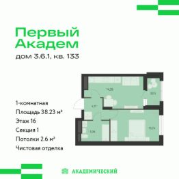 Продается 1-комнатная квартира площадью 38.23 кв.м. от девелопера "Академический" в жилом квартале "Первый Академ". Срок сдачи дома в 2026 году. Выгоды и скидка напрямую от застройщика.