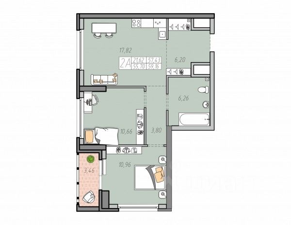 Продаётся 2-комнатная квартира в сданном доме (Печатников, 5 (Дом 1)), срок сдачи: IV-кв. 2024, общей площадью 57.43 кв.м., на 23 этаже.