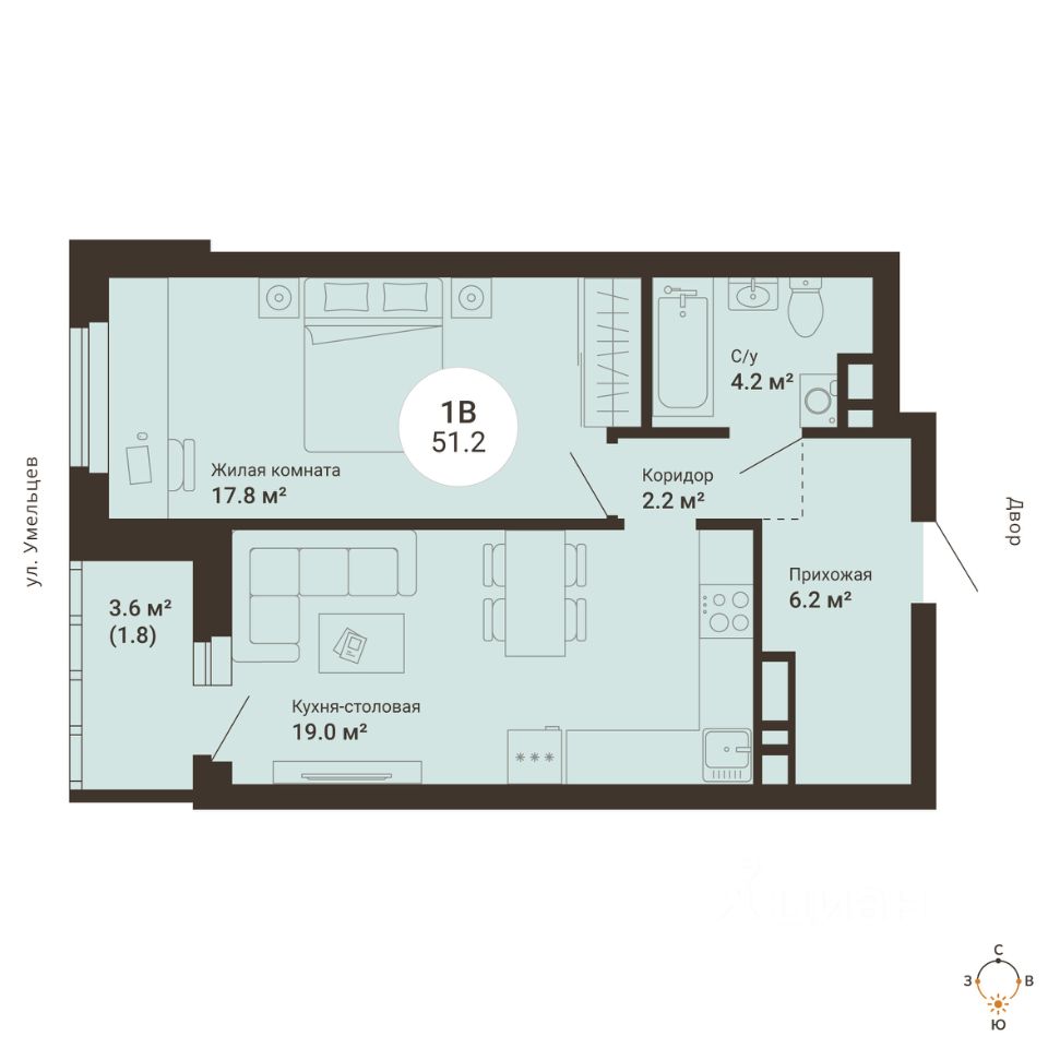 В жилом комплексе спроектированы квартиры на 1, 2 и 3 комнаты, в том числе студийного типа, с высотой потолков 2,72 м. Площадь помещений варьируется от 28,67 до 80,25 м². Лоджии и балконы в квартирах остеклены. "Ривьера Инвест Екатеринбург" сдает жилье с чистовой отделкой.