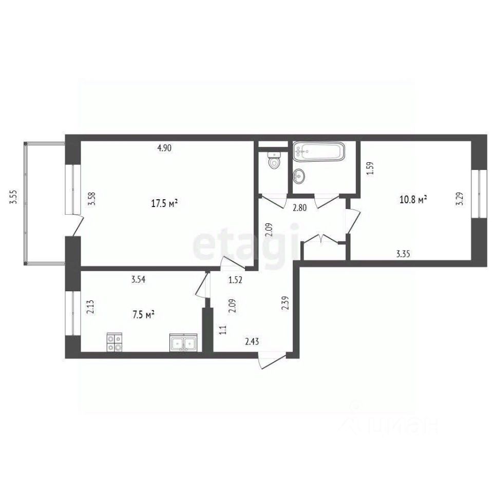 Двухкомнатная квартира площадью 49,2 кв. м расположена на третьем этаже в центре Талицы.