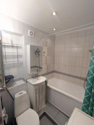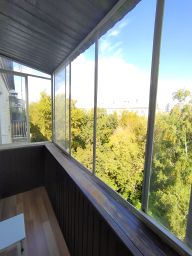 Установлены пластиковые окна, балкон застеклен, санузел в кафеле.