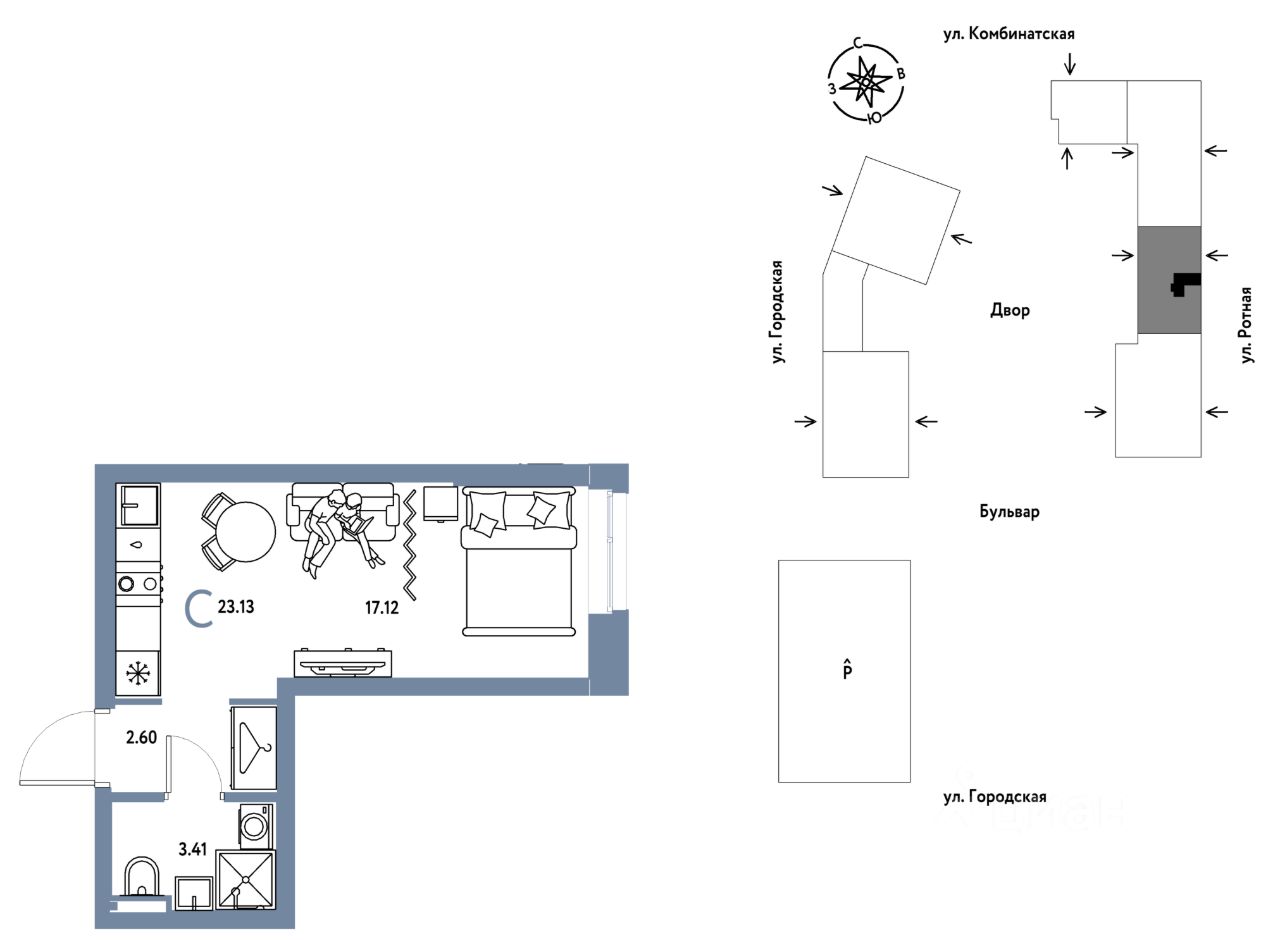 Продаётся студия в строящемся доме (Дом 1), срок сдачи: II-кв. 2027, общей площадью 23.13 кв.м., на 2 этаже. Новый жилой комплекс "Уральский сад" от застройщика "ГК Страна Девелопмент" расположен по адресу: г. Екатеринбург, посёлок Совхозный, Комбинатская улица.