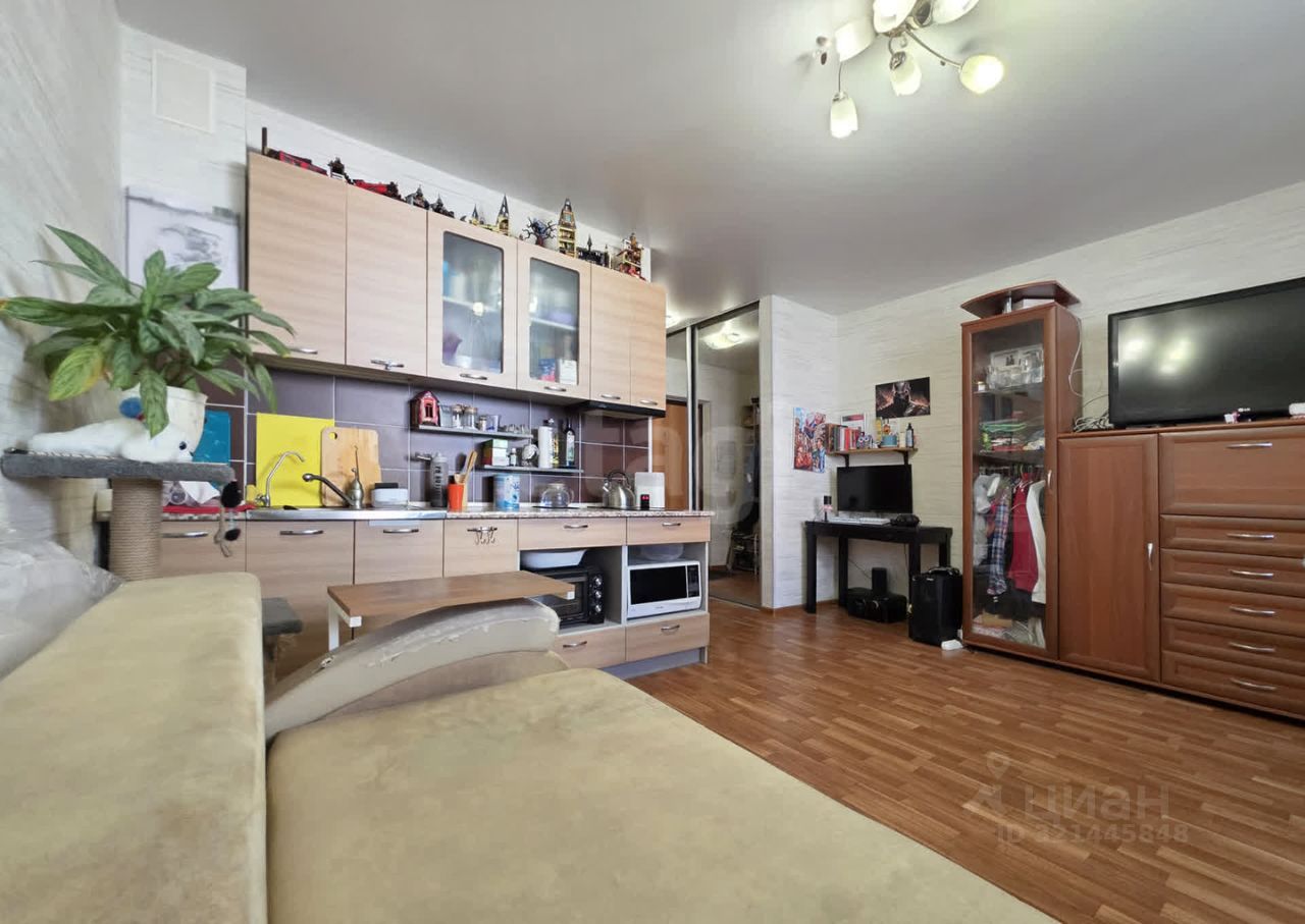 Продаётся светлая, уютная квартира студия, 24,5 квадратных метра. Сделан косметический ремонт. Квартира расположена на 3 этаже десяти этажного дома. Высота потолков 2,7 метра. Совмещённый санузел. Присутствует балкон (лоджия), застеклён пластиковыми трехкамерными окнами, сделан теплый пол, балкон утеплен. В квартире остается стенка-шкаф, диван, кухонные гарнитур со встроенной варочной панелью, вытяжка, духовой шкаф, микроволновая печь, обеденный стол, холодильник, стиральная машина, встроенный шкаф-купе, гардеробная.