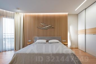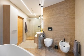 В гостиной размещён экран для семейных киносеансов, а по всей квартире установлены автоматические карнизы. При включении сценария "просмотр кино" портьеры закрываются, свет автоматически гаснет, остаётся только дежурный торшер, опускается экран. Несколько сценариев реализовано и в спальне. Встроенный плинтус с подсветкой отвечает за ночное освещение и работает по датчику присутствия, поэтому ребёнок или взрослый никогда не окажутся в тёмном коридоре. Свет также подчёркивает фактуру материалов. Сплит система позволяет регулировать комфортную температуру дома круглогодично. Установлена премиальная техника: стиральная машина с сушкой Neff,варочная поверхность, микроволновая печь, отчистка воздуха, вытяжка, посудомоечная машина Gorenje. Вся сантехника с термостатом.