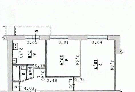 Квартира расположена на 5 этаже 9-этажного панельного дома. Из комнат с изолированными пространствами открываются виды на улицу и во двор. Жилая площадь составляет 23 кв. м, а площадь кухни — 7,3 кв. м. Две комнаты имеют площадь 10,7 кв. м и 15,7 кв. м соответственно.