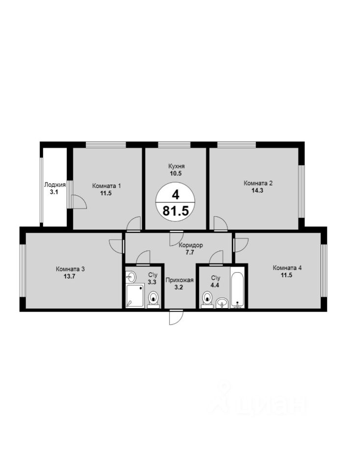 Продается (переуступка от физлица) 4-комнатная квартира площадью 81.48 кв.м. в жилом квартале "Первый Академ".