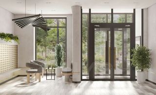 Сквозной холл с мягким лобби - нейтральная территория для экспресс-встреч и зона ожидания для курьеров. В холлах расположены гостевые санузлы, а также зоны с доступом только для счастливчиков: колясочная и хранение малогабаритного снаряжения.