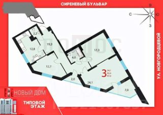 В продаже 3х комнатная квартира в доме 2017г. постройки, в ЖК Новый Дом.