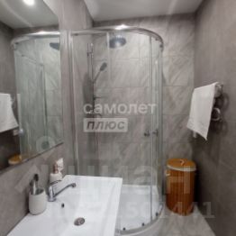 - санузел совмещенный, оснащенный ванной, унитазом, раковиной с тумбой, потоленцесушителем и душевой системой. Покрытие полов и стен керамогранит.