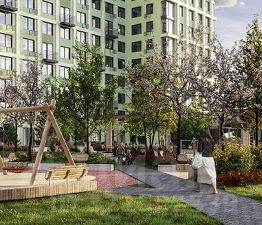 Двор-сад с приватной территорией и собственным бульваром. Детские площадки, воркаут-зоны, арт-объекты и места для тихого отдыха. Вход во двор по системе face id - создаст дополнительную безопасность.