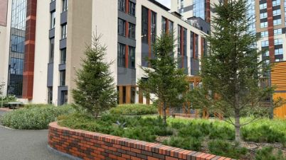 Совместно с компанией Urban Green разработан проект по благоустройству внутренней территории с дорожками для катания на роликах, беседками, бесплатным Wi-Fi. Специально подобранные гипоаллергенные растения позволяют внутреннему пространству комплекса круглый год цвести и радовать жителей разнообразием красок.
