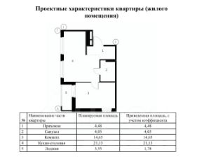 Общая площадь квартиры составляет 44,1 кв. м, из которых 14.65 кв. м — жилая площадь, 21.13 кв. м — кухня-гостиная, санузел -4.03 м, лоджия-3.55,прихожая -4.48. Высота потолков — 2,7 м, что создаёт ощущение простора и свободы. В квартире сделан качественный чистовой ремонт от застройщика.