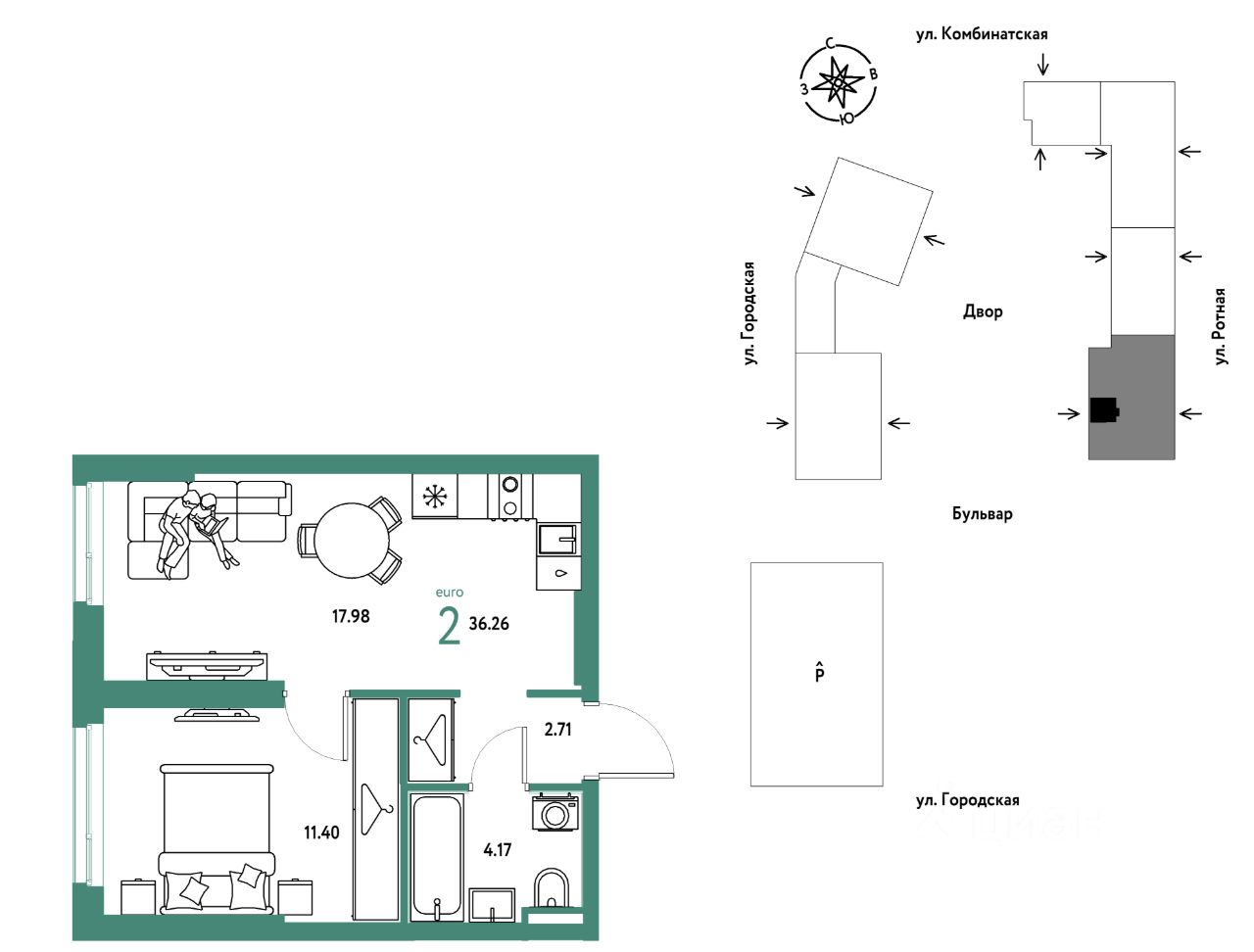 Продаётся 2-комнатная квартира в строящемся доме (Дом 1), срок сдачи: II-кв. 2027, общей площадью 36.26 кв.м., на 4 этаже. Новый жилой комплекс "Уральский сад" от застройщика "ГК Страна Девелопмент" расположен по адресу: г. Екатеринбург, посёлок Совхозный, Комбинатская улица.