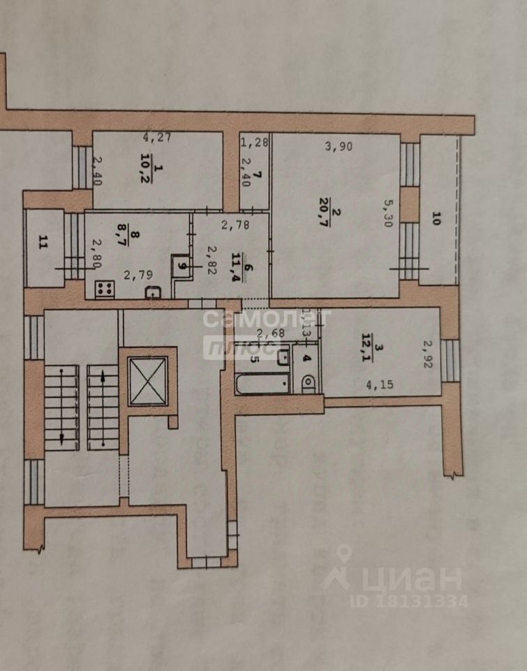 - 3-х комнатная площадью 71 кв.м. Хорошая планировка, комнаты изолированные 20,7, 12,1 и 10,2 кв.м., кухня 8,7 кв.м.