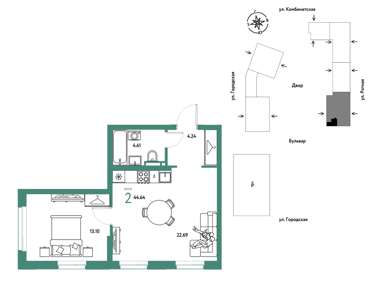 Продаётся 2-комнатная квартира в строящемся доме (Дом 1), срок сдачи: II-кв. 2027, общей площадью 44.64 кв.м., на 13 этаже. Новый жилой комплекс "Уральский сад" от застройщика "ГК Страна Девелопмент" расположен по адресу: г. Екатеринбург, посёлок Совхозный, Комбинатская улица.