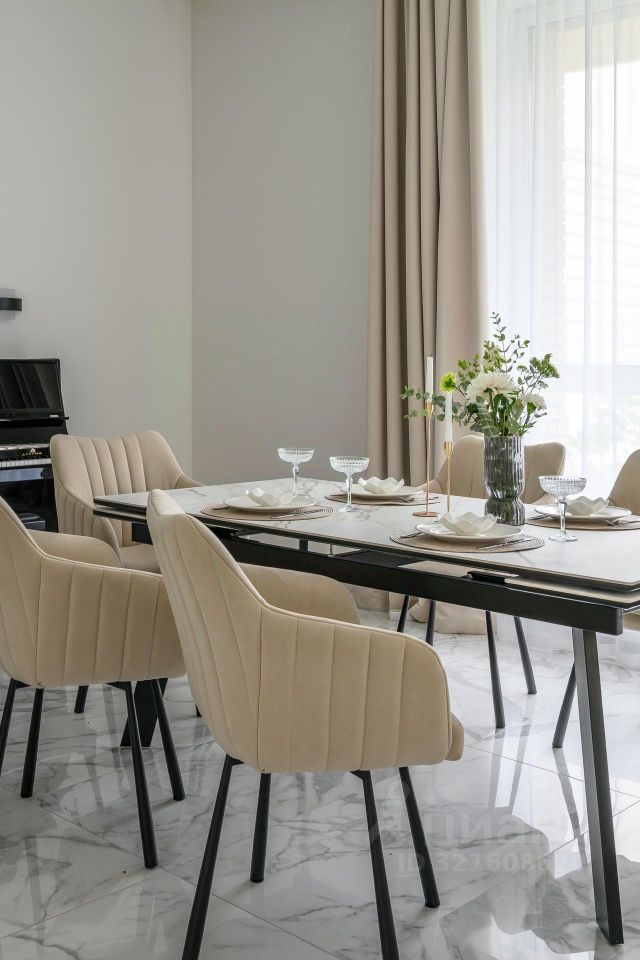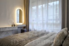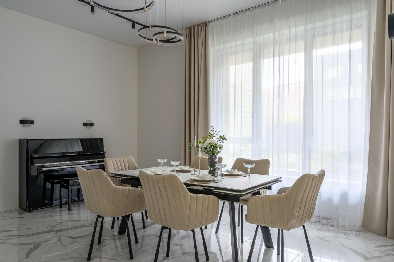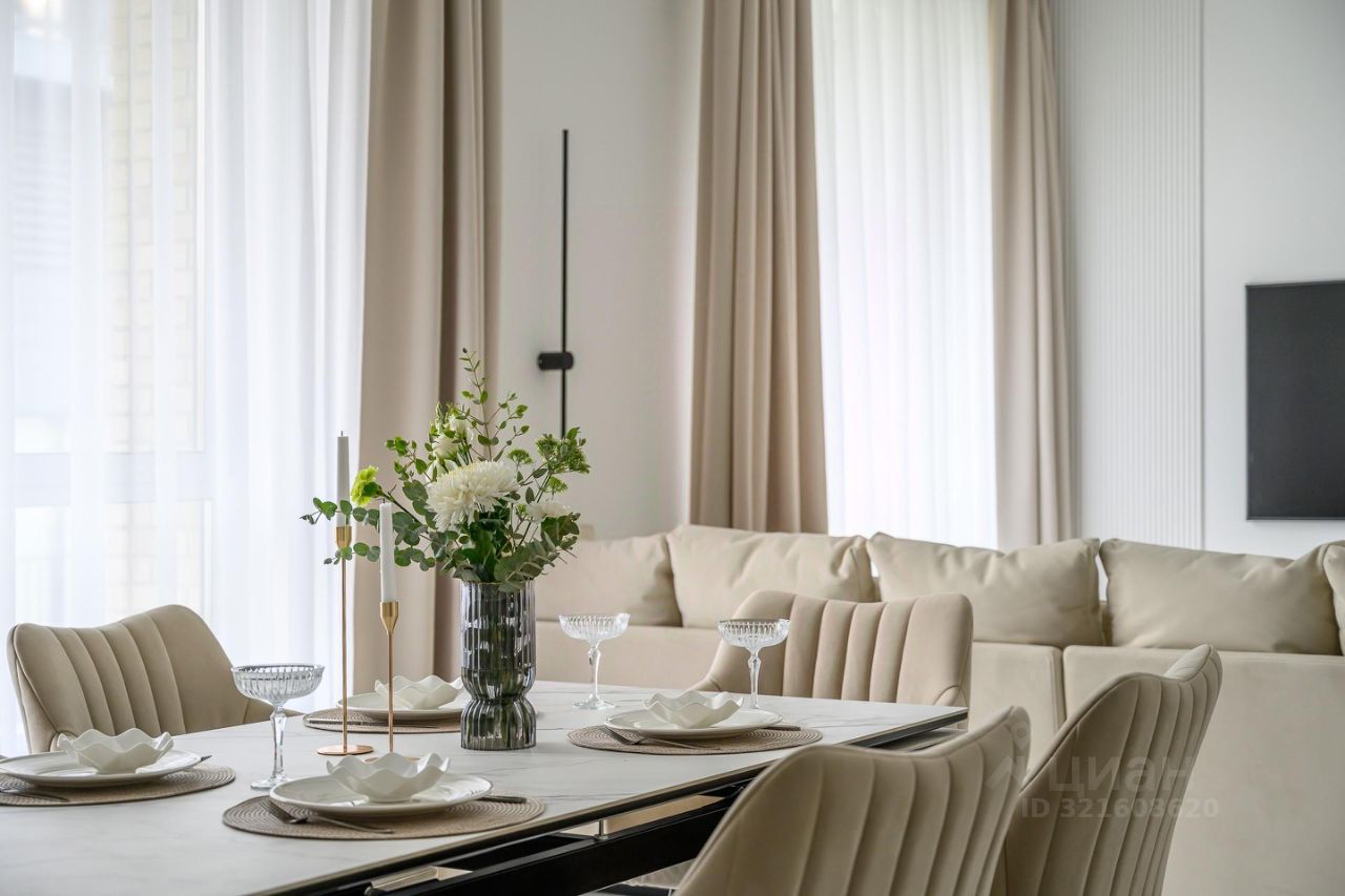 Дом сдан в октябре 2024 года. Готовая квартира бизнес-класса общей площадью 130 м2 с просторной гостиной, гостевым санузлом, КУИ, двумя спальнями, гардеробной и одной мастер-спальней (с собственным санузлом). Высота потолков - 3,5 метра.