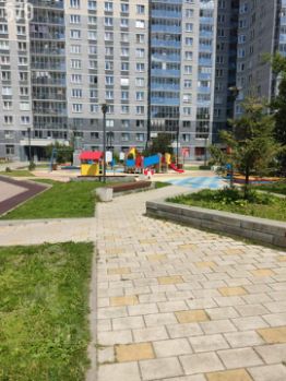 - Закрытый двор с зелёными зонами, детскими и спортивными площадками.