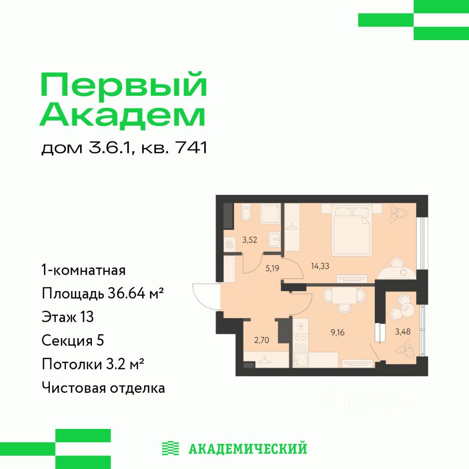 Проект от основателя и главного застройщика Академического района. Расположение и инфраструктура: Квартал "Первый Академ" включает восемь блоков домов, две школы и четыре детских сада в периметре улиц Краснолесья А. Мехренцева Ак. Вонсовского Очеретина. Сроки строительства квартала: 1 квартал 2023 3 квартал 2028. В числе особых преимуществ близость к Юго-западному лесопарку и ТРЦ "Академический": магазины, кафе, парк развлечений, кинотеатр, фитнесс-центр с бассейном. Развитая транспортная развязка, включающая трамвайную линию. На территории квартала планируется: видеонаблюдение 24/7, подземный паркинг с доступом на лифте, кладовые, велодорожки, многоуровневое озеленение, workout зоны для уличного фитнеса, детские игровые комплексы в эко-стиле. На первых этажах будут располагаться торговые галереи.