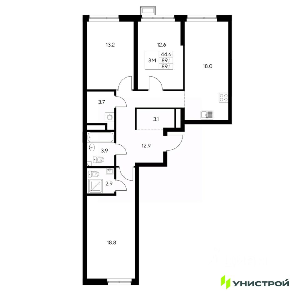 Общая площадь89,1 м²